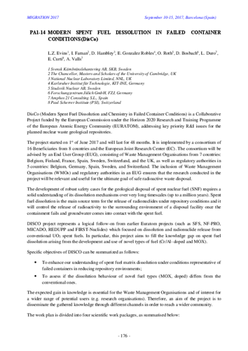 Evins, L Z; Farnan, I; Hambley, D; Gonzalez Robles, E; Roth, O; Bosbach, D; Duro, L; Curti, E; Valls, A