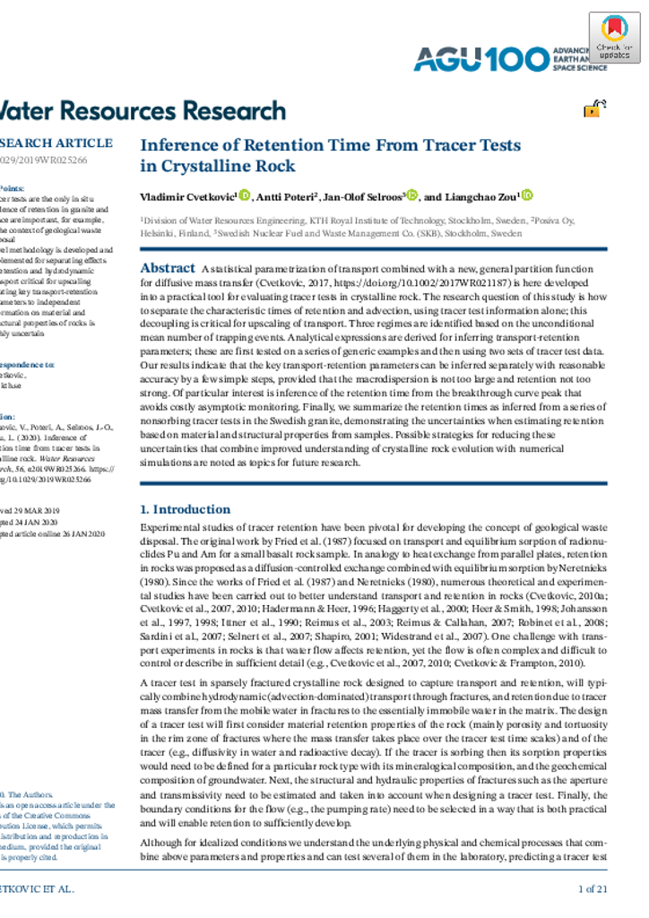Cvetkovic, Vladimir; Poteri, Antti; Selroos, Jan-Olof; Zou, Liangchao