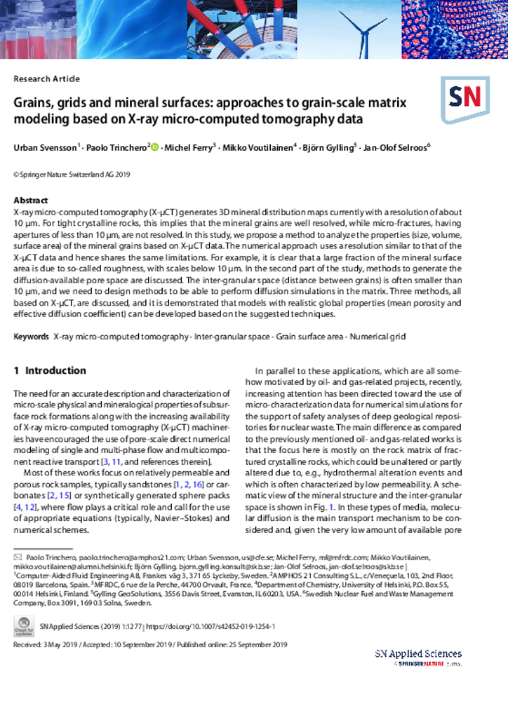 This research has received funding from Swedish Nuclear Fuel and Waste Management Co