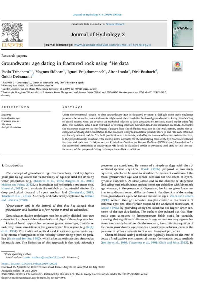 Trinchero, Paolo; Sidborn, Magnus; Puigdomenech, Ignasi; Iraola, Aitor; Bosbach, Dirk; Deissmann, Guido