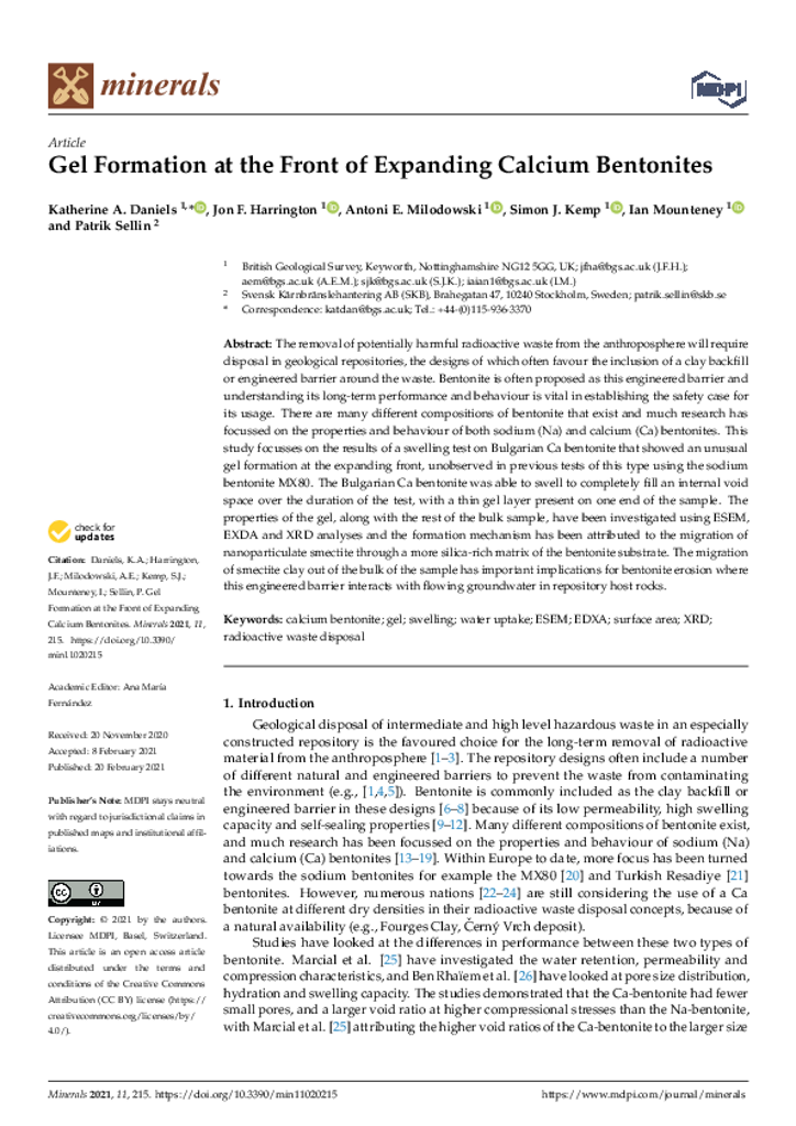 Daniels, Katherine A; Harrington, Jon F; Milodowski, Antoni E; Kemp, Simon J; Mounteney, Ian; Sellin, Patrik