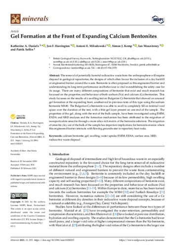 Gel Formation at the Front of Expanding Calcium Bentonites