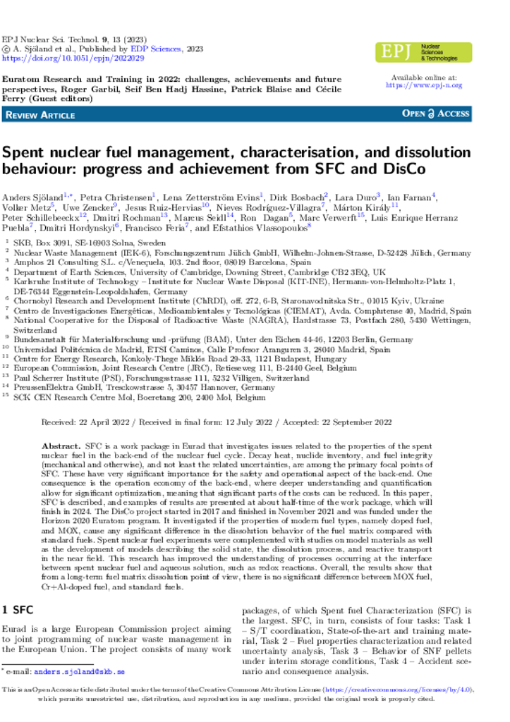 Sjöland, Anders; Christensen, Petra; Zetterström Evins, Lena; Bosbach, Dirk; Duro, Lara; Farnan, Ian; Metz, Volker; Zencker, Uwe; Ruiz-Hervias, Jesus; Rodríguez-Villagra, Nieves; Király, Márton; Schillebeeckx, Peter; Rochman, Dmitri; Seidl, Marcus; Dagan, Ron; Verwerft, Marc; Puebla, Luis Enrique Herranz; Hordynskyi, Dmitri; Feria, Francisco; Vlassopoulos, Efstathios