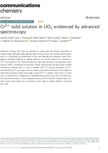 Smith, Hannah; Townsend, Luke T; Mohun, Ritesh; Cordara, Théo; Stennett, Martin C; Mosselmans, J Frederick W; Kvashnina, Kristina; Cork, Claire L