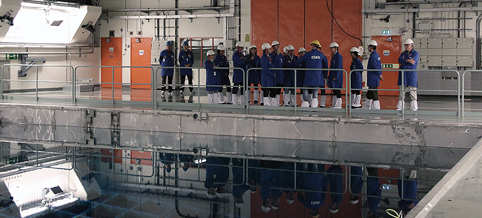 On Wednesday and Thursday, an inspection was carried out at SKB’s facilities in Oskarshamn. The Land and Environment Court along with representatives from SSM, the municipality, the County Administrative Board and the environmental organisations started the inspection with a visit to Clab, where they could see how transport casks are received in the facility and then cooled down and how the fuel assemblies are reloaded into storage canisters, which are then lowered down into the storage pools. Thereafter, the site where the encapsulation plant will be built was shown and how SKB intends to solve the handling of surface water for Clab/Clink.
