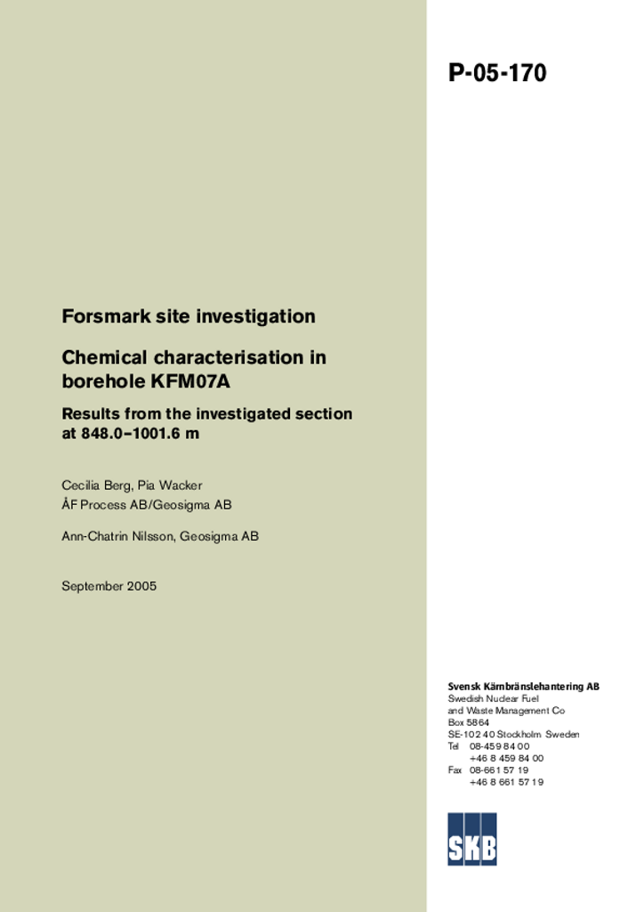 Chemical characterisation in borehole KFM07A. Results from the investigated section at 848.0-1001.6 m. Forsmark site investigation