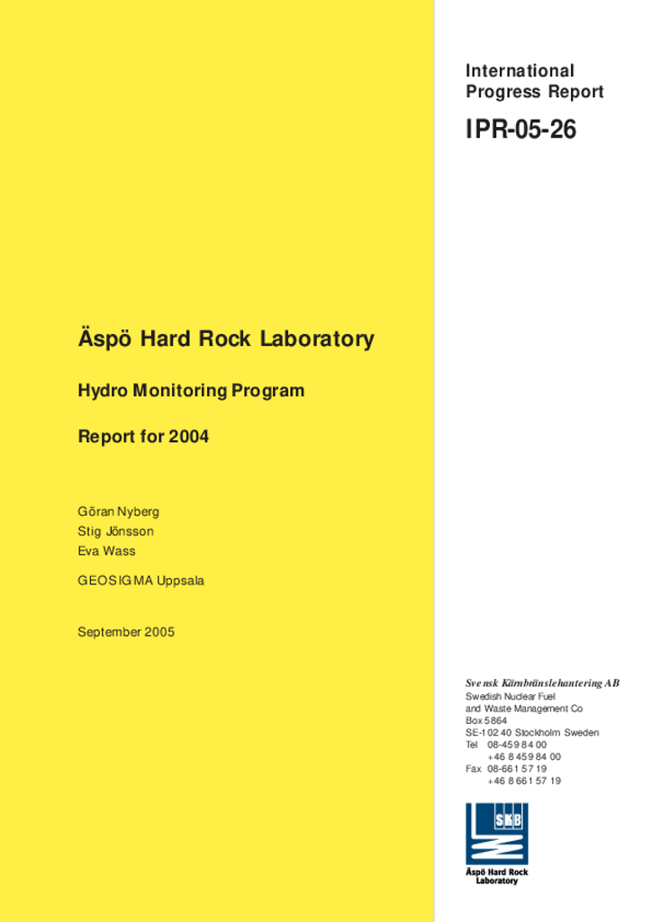 Äspö Hard Rock Laboratory. Hydro Monitoring Program. Report for 2004