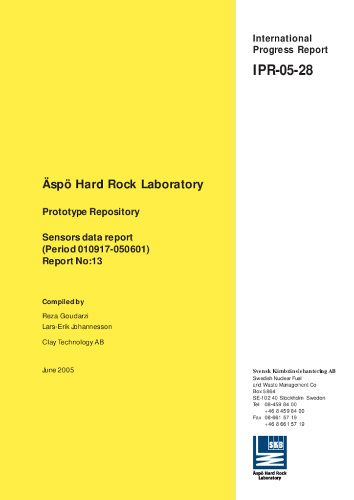 Äspö Hard Rock Laboratory. Prototype Repository. Sensors data report (period 010917-050601) Report No:13