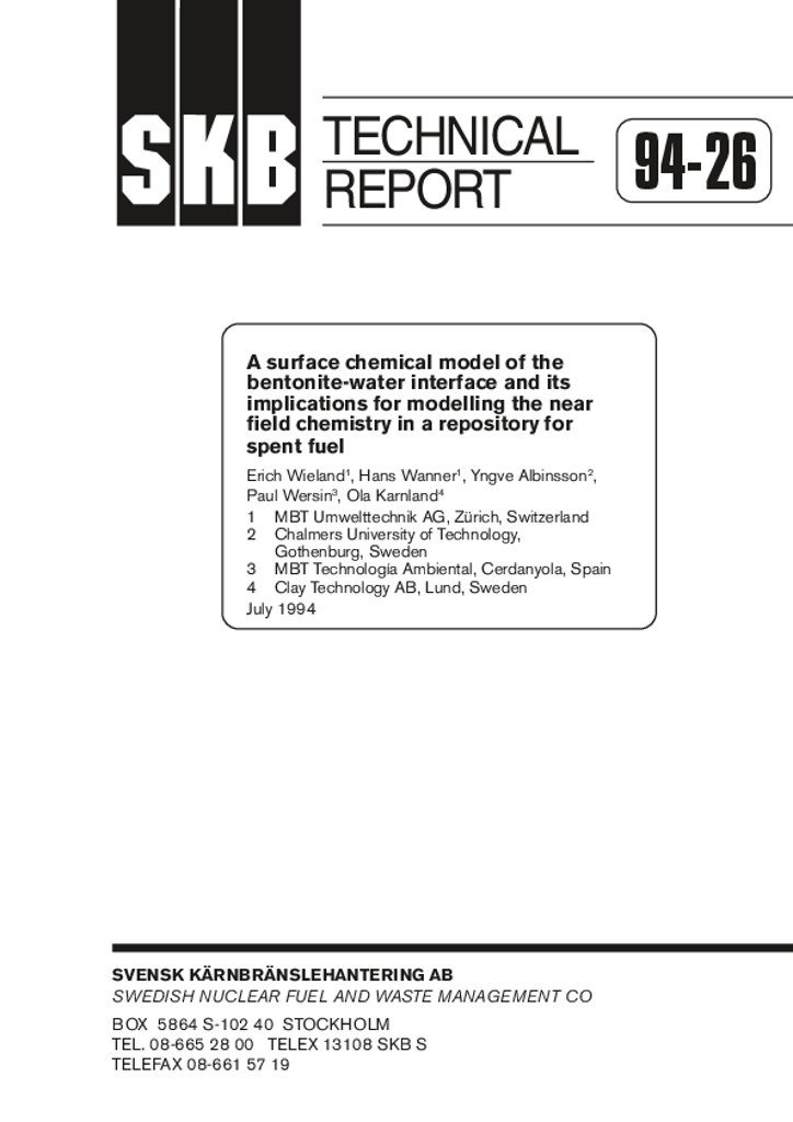 Wieland, Erich; Wanner, Hans; Albinsson,Yngve; Wersin, Paul; Karnland, Ola