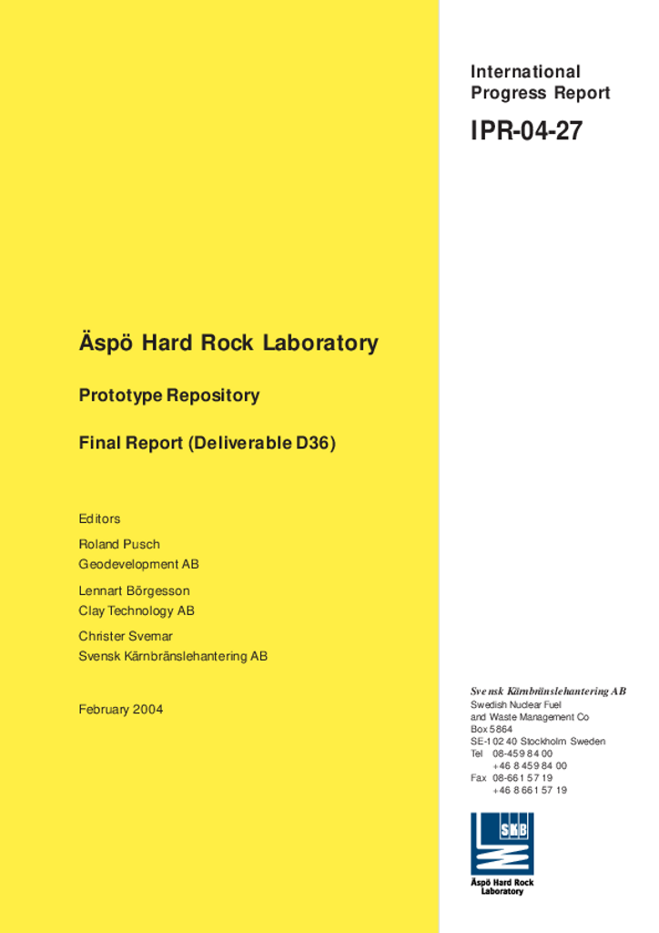 Pusch, Roland; Börgesson, Lennart; Svemar, Christer