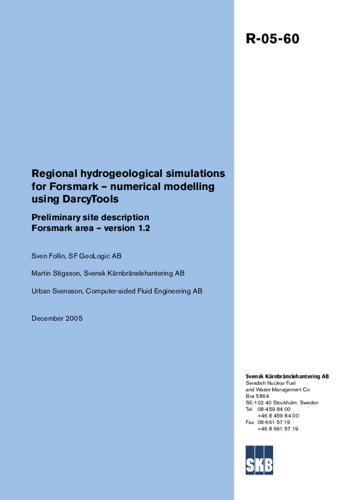 Regional hydrogeological simulations for Forsmark - numerical modelling using DarcyTools. Preliminary site description Forsmark area - version 1.2