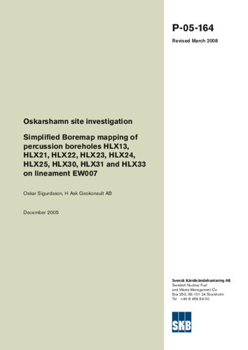 Oskarshamn site investigation. Simplified Boremap mapping of percussion boreholes HLX13, HLX21, HLX22, HLX23, HLX24, HLX25, HLX30, HLX31 and HLX33 on lineament EW007. Revised March 2008