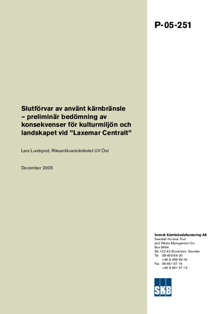 Slutförvar av använt kärnbränsle - preliminär bedömning av konsekvenser för kulturmiljön och landskapet vid "Laxemar Centralt"