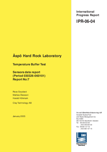 Temperature buffer test. Sensors data report (Period 030326-060101) report no:7