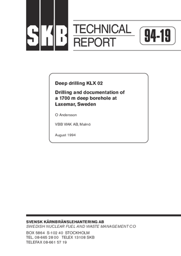 Deep drilling KLX 02. Drilling and documentation of a 1700 m deep borehole at Laxemar, Sweden
