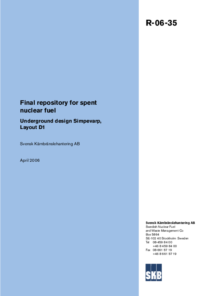 Final repository for spent nuclear fuel. Underground design Simpevarp Layout D1