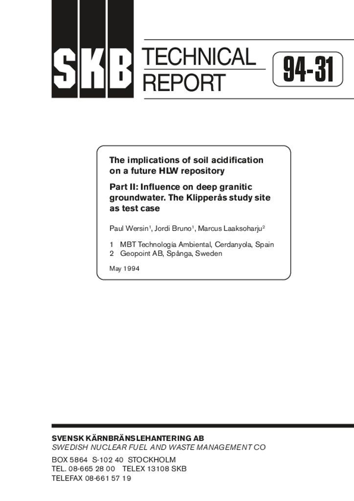 Wersin, Paul; Bruno, Jordi; Laaksoharju, Marcus