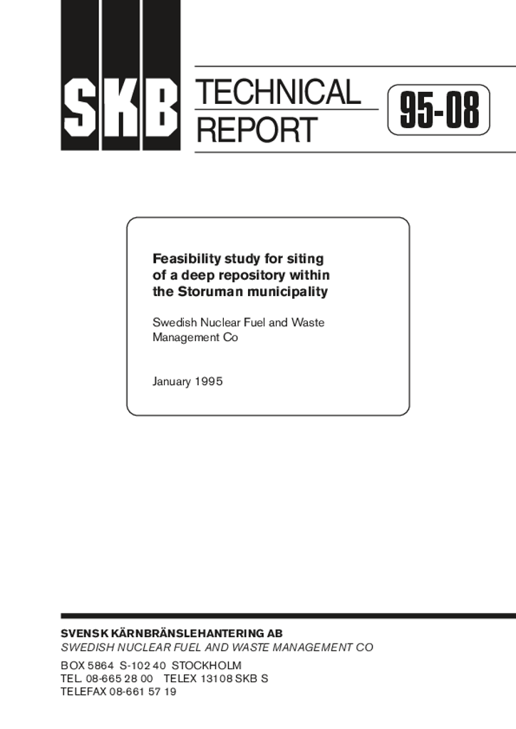 Feasibility study for siting of a deep repository within the Storuman municipality