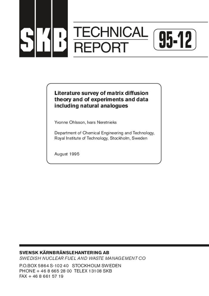 Ohlsson, Yvonne; Neretnieks, Ivars