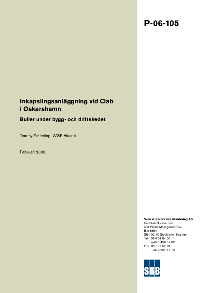 Inkapslingsanläggning vid Clab i Oskarshamn. Buller under bygg- och driftskedet