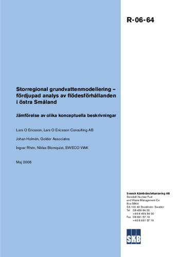Storregional grundvattenmodellering - fördjupad analys av flödesförhållanden i östra Småland. Jämförelse av olika konceptuella beskrivningar