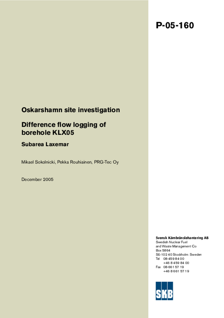 Oskarshamn site investigation. Difference flow logging of borehole KLX05. Subarea Laxemar