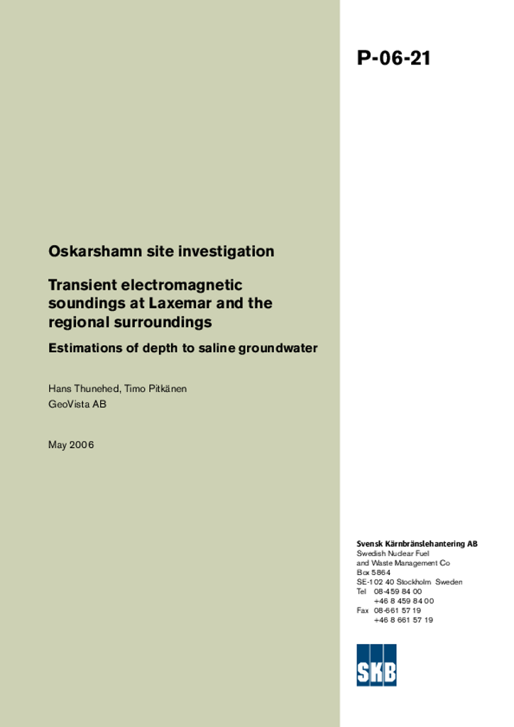 Oskarshamn site investigation. Transient electromagnetic soundings at Laxemar and the regional surroundings. Estimations of depth to saline groundwater