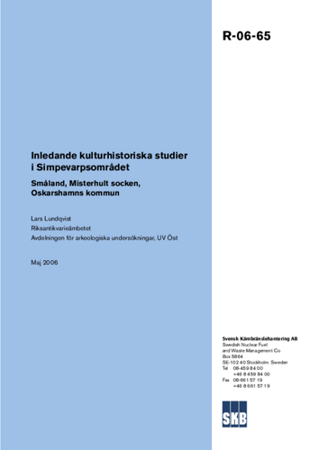 Inledande kulturhistoriska studier i Simpevarpsområdet. Småland, Misterhult socken, Oskarshamns kommun