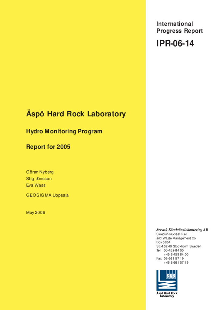 Äspö Hard Rock Laboratory. Hydro Monitoring Program. Report for 2005