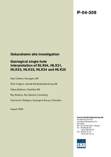 Oskarshamn site investigation. Geological single-hole interpretation of KLX04, HLX21, HLX22, HLX23, HLX24 and HLX25