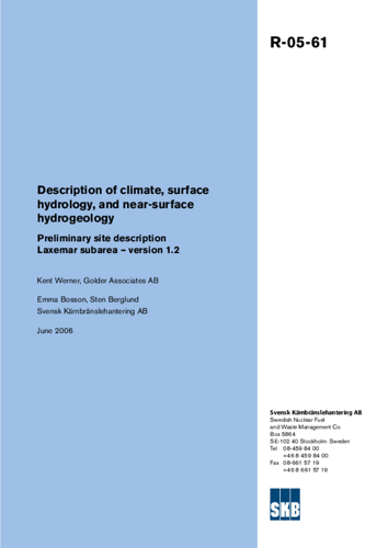 Description of climate, surface hydrology, and near-surface hydrogeology. Preliminary site description Laxemar subarea - version 1.2