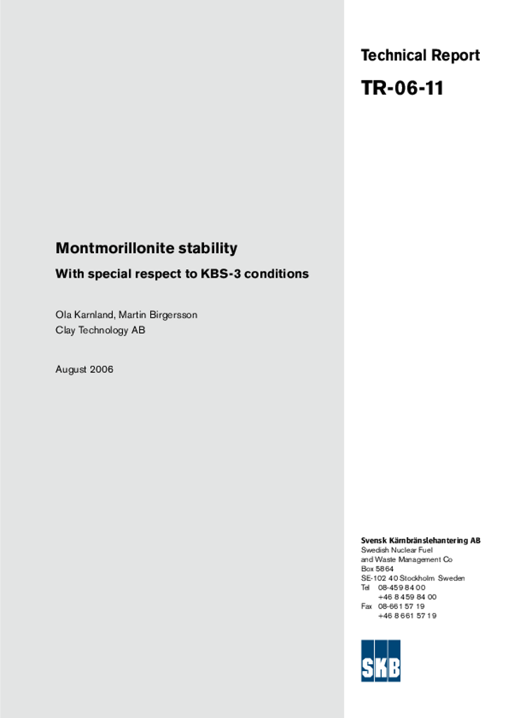 Montmorillonite stability. With special respect to KBS-3 conditions