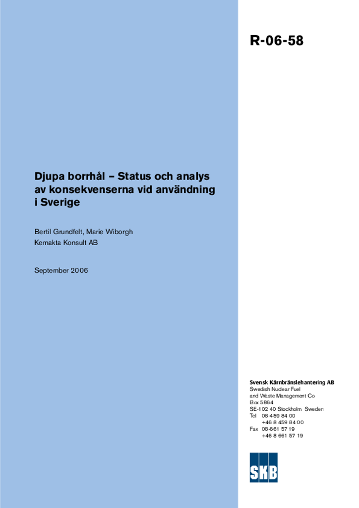 Djupa borrhål - Status och analys av konsekvenserna vid användning i Sverige