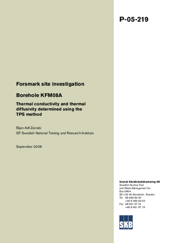 Forsmark site investigation. Borehole KFM08A Thermal conductivity and thermal diffusivity determined using the TPS method