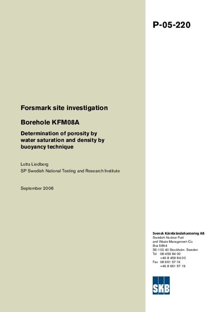 Forsmark site investigation. Borehole KFM08A Determination of porosity by water saturation and density by buoyancy technique