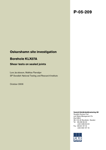 Oskarshamn site investigation. Borehole KLX07A. Shear tests on sealed joints