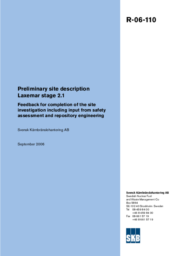 Preliminary site description Laxemar stage 2.1. Feedback for completion of the site investigation including input from safety assessment and repository engineering