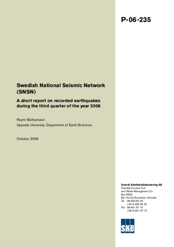 Swedish National Seismic Network (SNSN) A short report on recorded earthquakes during the third quarter of the year 2006