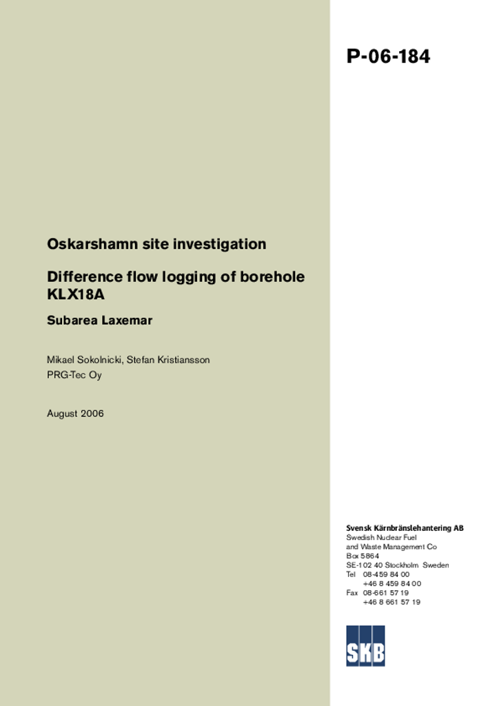 Oskarshamn site investigation. Difference flow logging of borehole KLX18A Subarea Laxemar