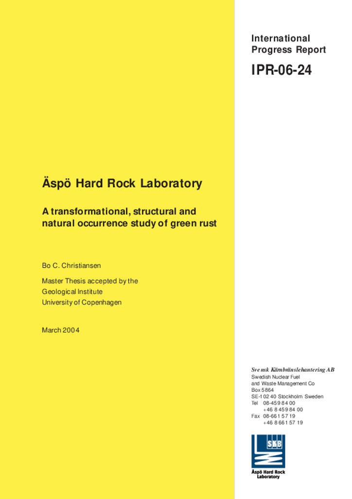 Äspö Hard Rock Laboratory. A transformational, structural and natural occurrence study of green rust
