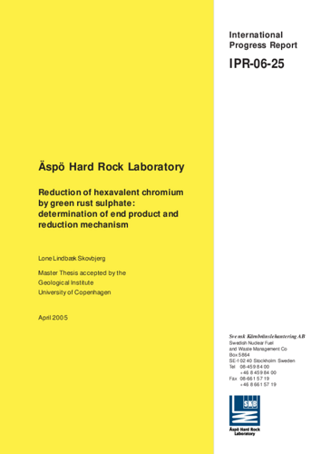 Äspö Hard Rock Laboratory. Reduction of hexavalent chromium by green rust sulphate: determination of end product and reduction mechanism