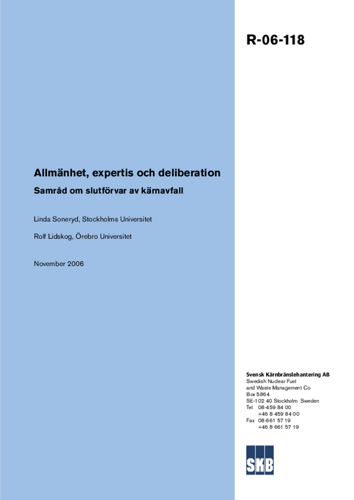 Allmänhet, expertis och deliberation. Samråd om slutförvar av kärnavfall