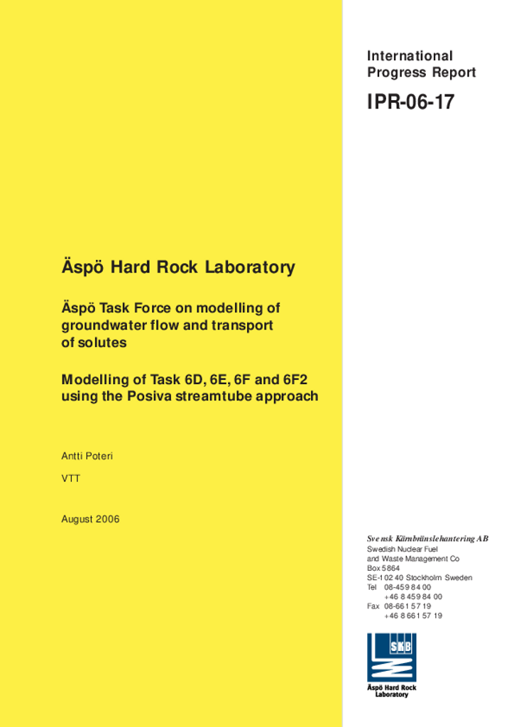 Äspö Hard Rock Laboratory. Äspö Task Force on modelling of groundwater flow and transport of solutes. Modelling of Task 6D, 6E, 6F and 6F2 using the Posiva streamtube approach