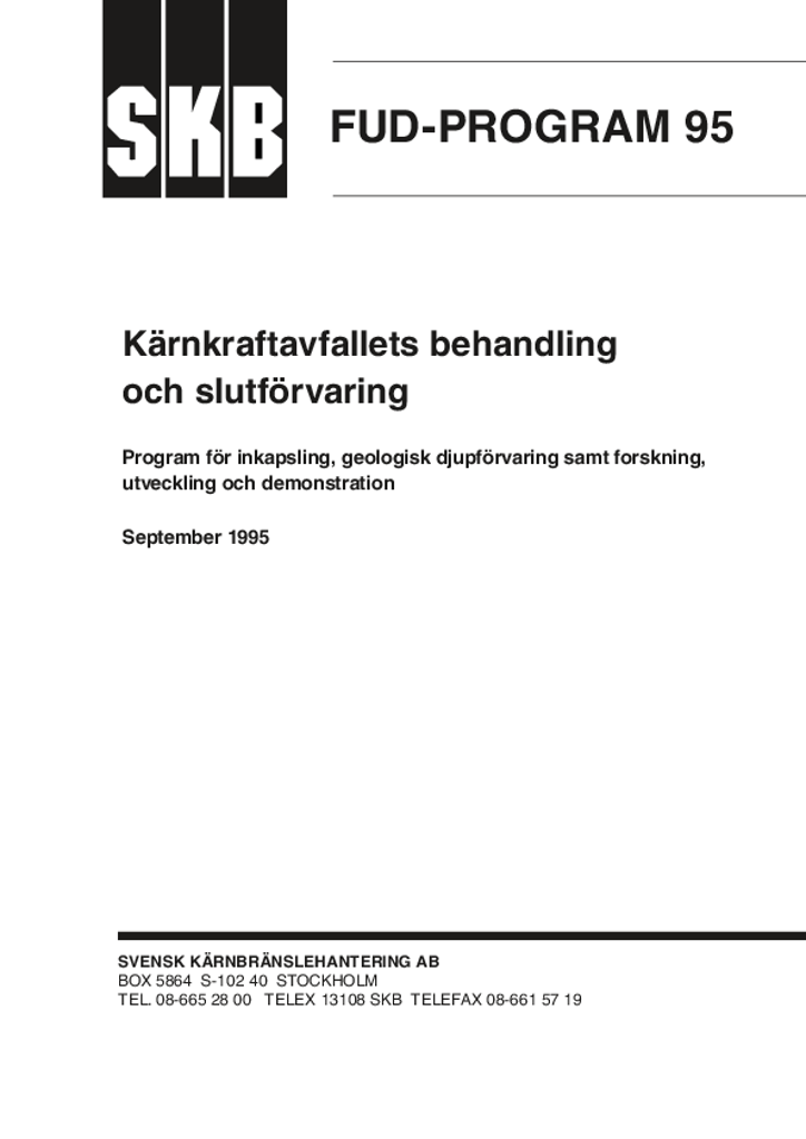 FUD-PROGRAM 95. Kärnkraftavfallets behandling och slutförvaring. Program för inkapsling, geologisk djupförvaring samt forskning, utveckling och demonstration