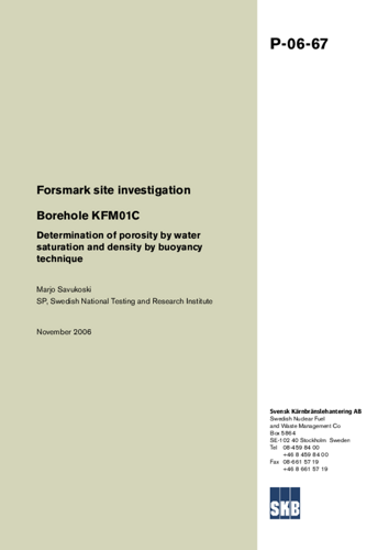 Forsmark site investigation. Borehole KFM01C Determination of porosity by water saturation and density by buoyancy technique
