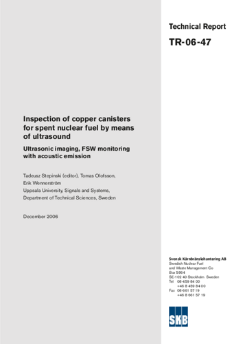 Inspection of copper canisters for spent nuclear fuel by means of ultrasound. Ultrasonic imaging, FSW monitoring with acoustic emission
