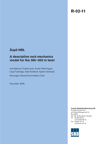 Äspö HRL. A descriptive rock mechanics model for the 380-500 m level