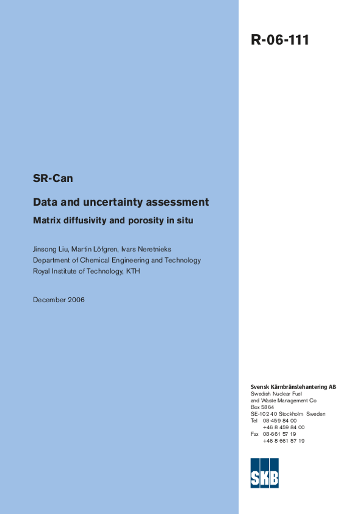 Liu, Jinsong; Löfgren, Martin; Neretnieks, Ivars