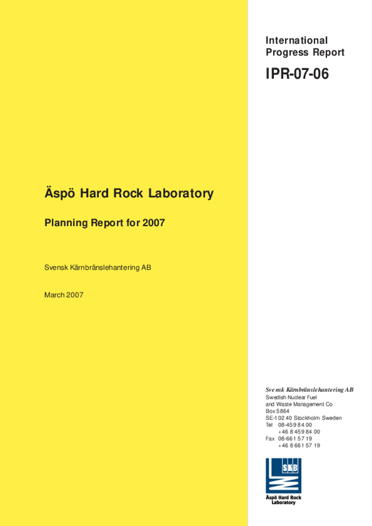 Äspö Hard Rock Laboratory. Planning Report for 2007