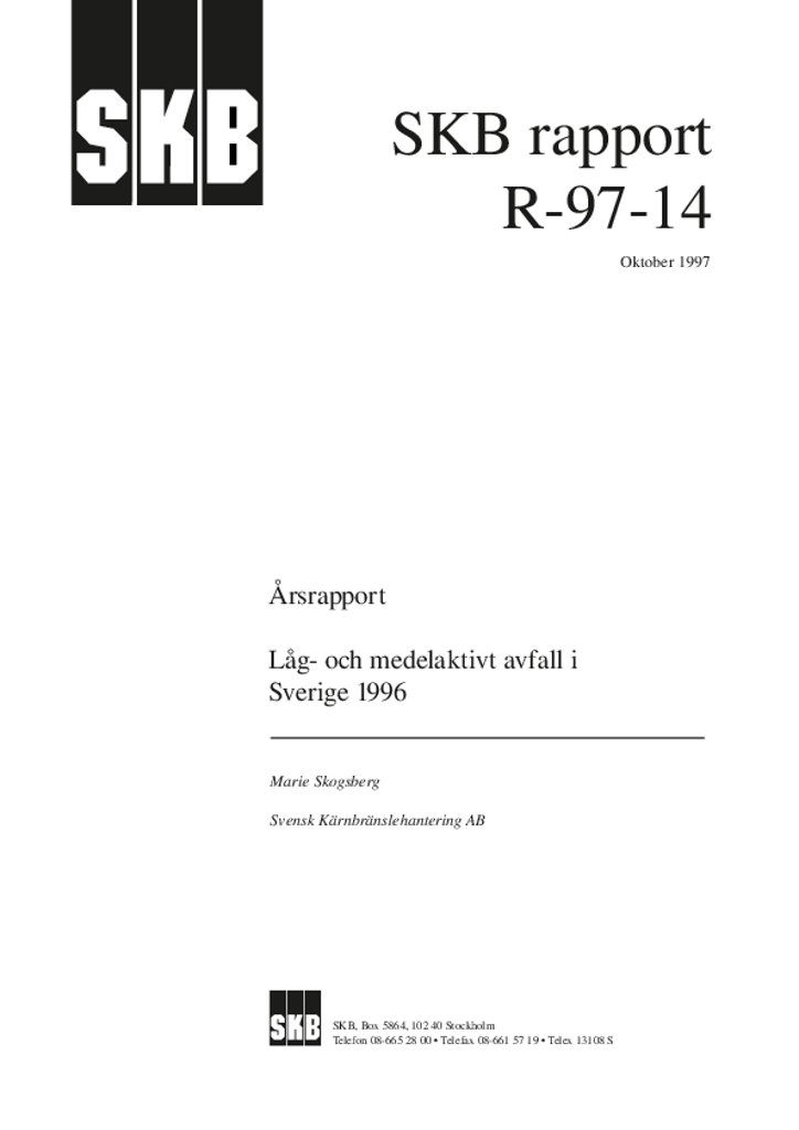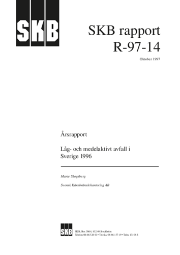 Årsrapport låg- och medelaktivt avfall i Sverige 1996